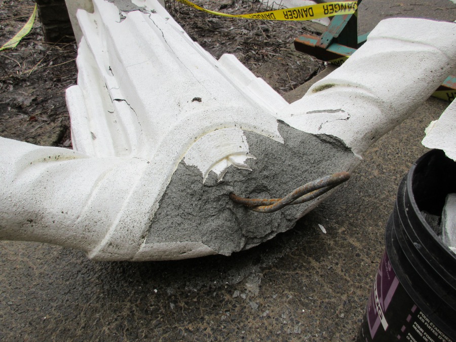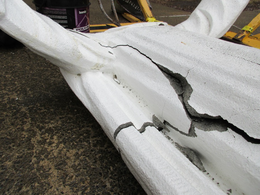 Un accident a gravement abîmé une statue du Sacré-Coeur, faite en béton par le sculpteur Joseph Guardo en 1956.